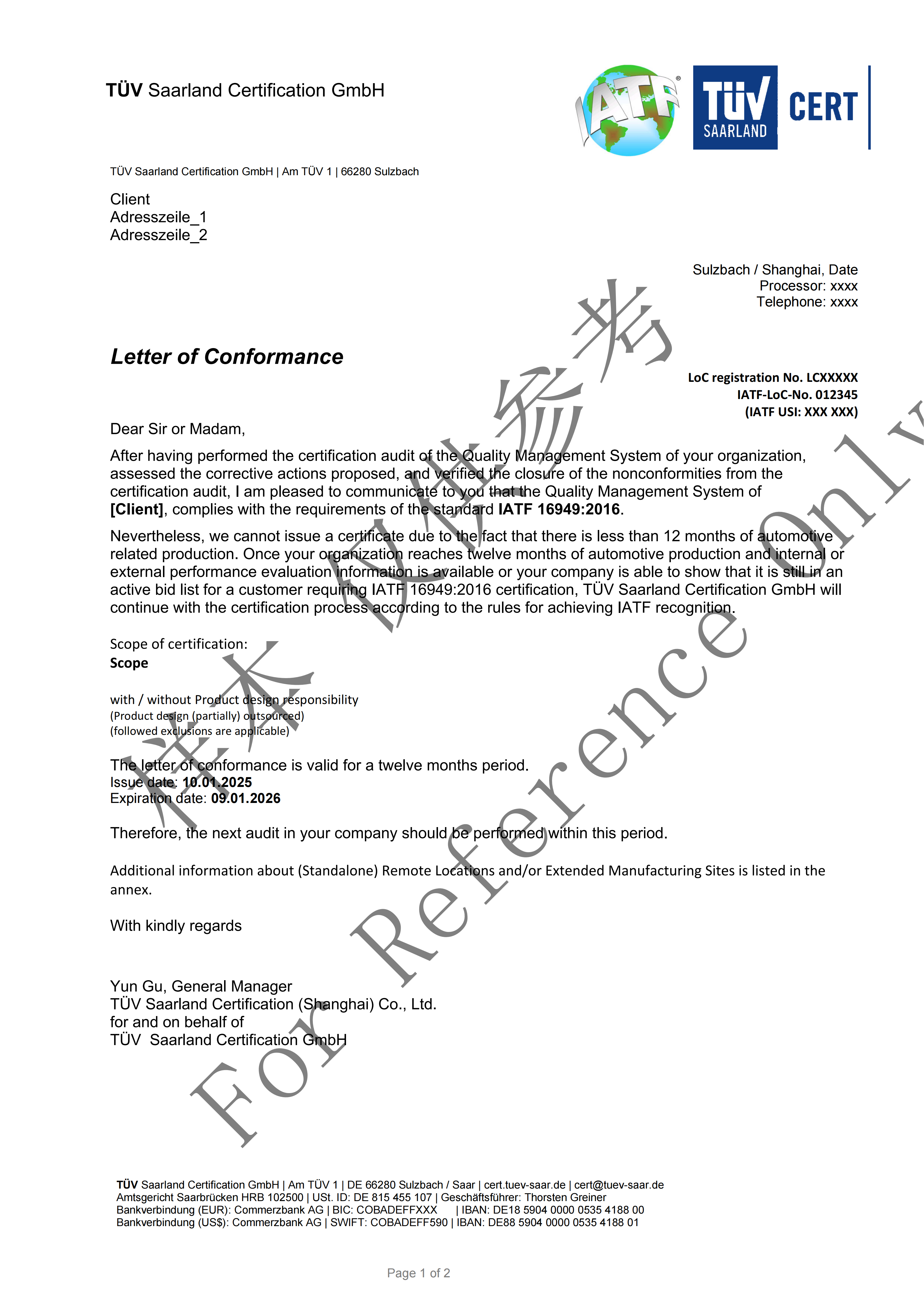 高标准和高质量的供应链是汽车工业取得成功的前提。我们依据IATF 16949、VDA 6.X提供认证。通过IATF 16949(早先为IATF 16949)管理体系的认证,是打开市场和获取客户的敲门砖。